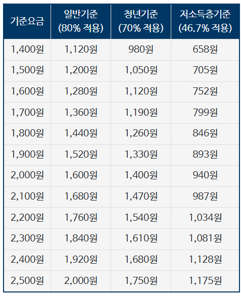 - 기존의 대중교통 할인 카드나 알뜰교통카드와 중복 할인은 불가능합니다.
