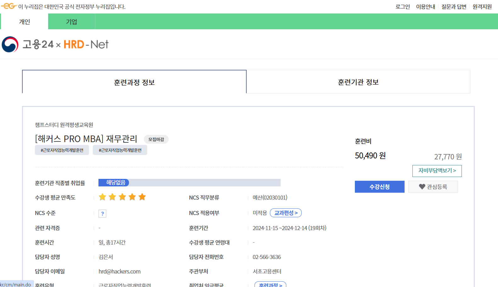 여기서 주의할 점은, #근로자직업능력개발훈련 인지 확인 필요 (실직자 강의, 재직자 강의가 구분되어 있는 경우가 있으니 사전 확인 필요!)