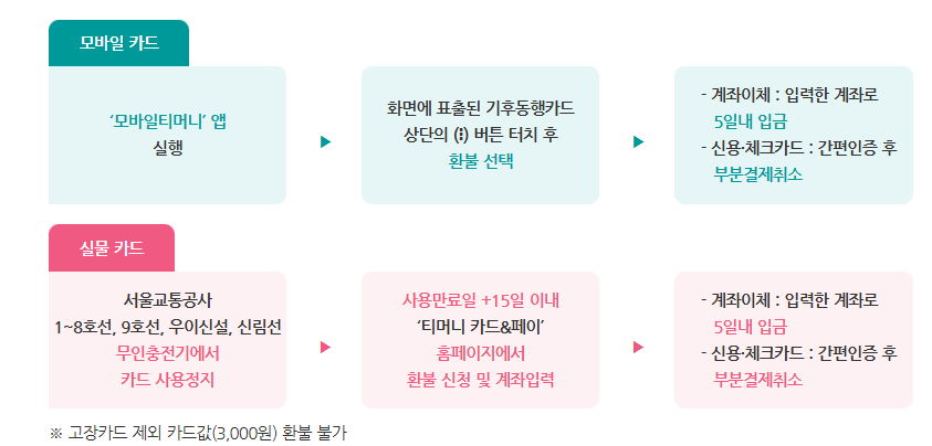 - 국내 계좌가 없는 외국인이라면 티머니 본사를 방문해서 현금 환불 받을 수 있습니다.😮