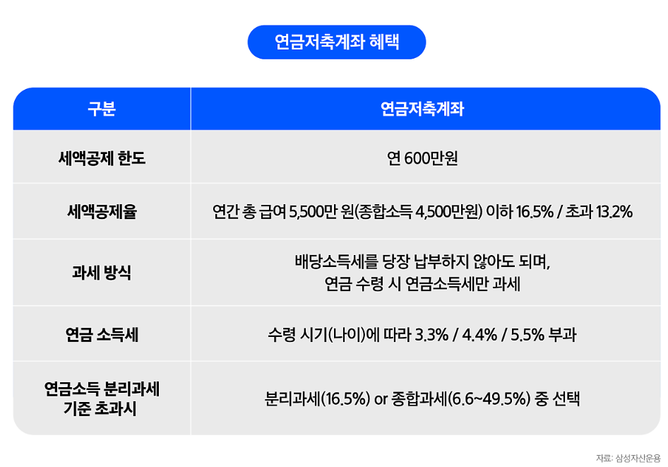 - 세금 혜택: 세액공제 및 절세 혜택이 있어 연말정산 시 유리.